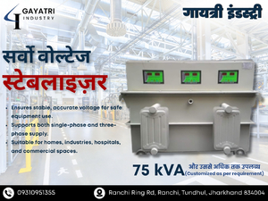 Gayatri Servo Stabilizer is your trusted source for Servo voltage stabilizer products in Ranchi. We supply stabilizers for industries, hospitals, offices, and commercial spaces. Our stabilizers ensure steady voltage, improve equipment life, and support smooth daily operations. From supply to installation and service, we provide complete power protection solutions. Get in touch with Gayatri today for reliable Servo voltage stabilizer systems in Ranchi.